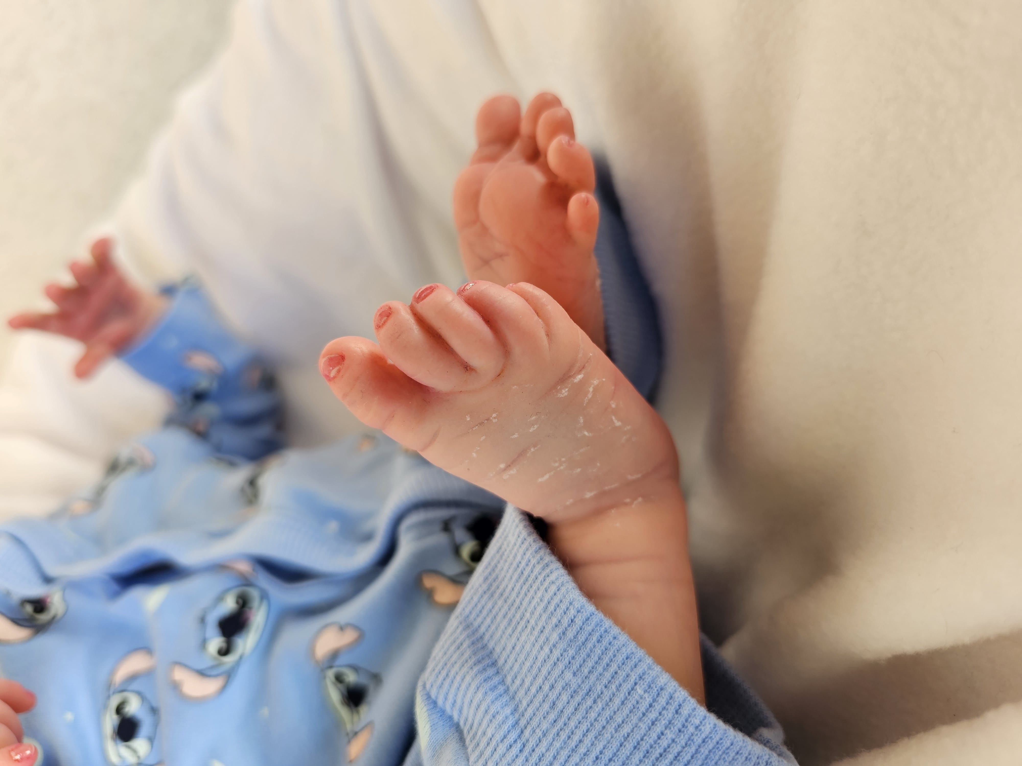 Confeccionado com técnicas avançadas de pintura, que dão suavidade e realismo ao bebé, diversos tons e entre tons de cores, rico em detalhes;