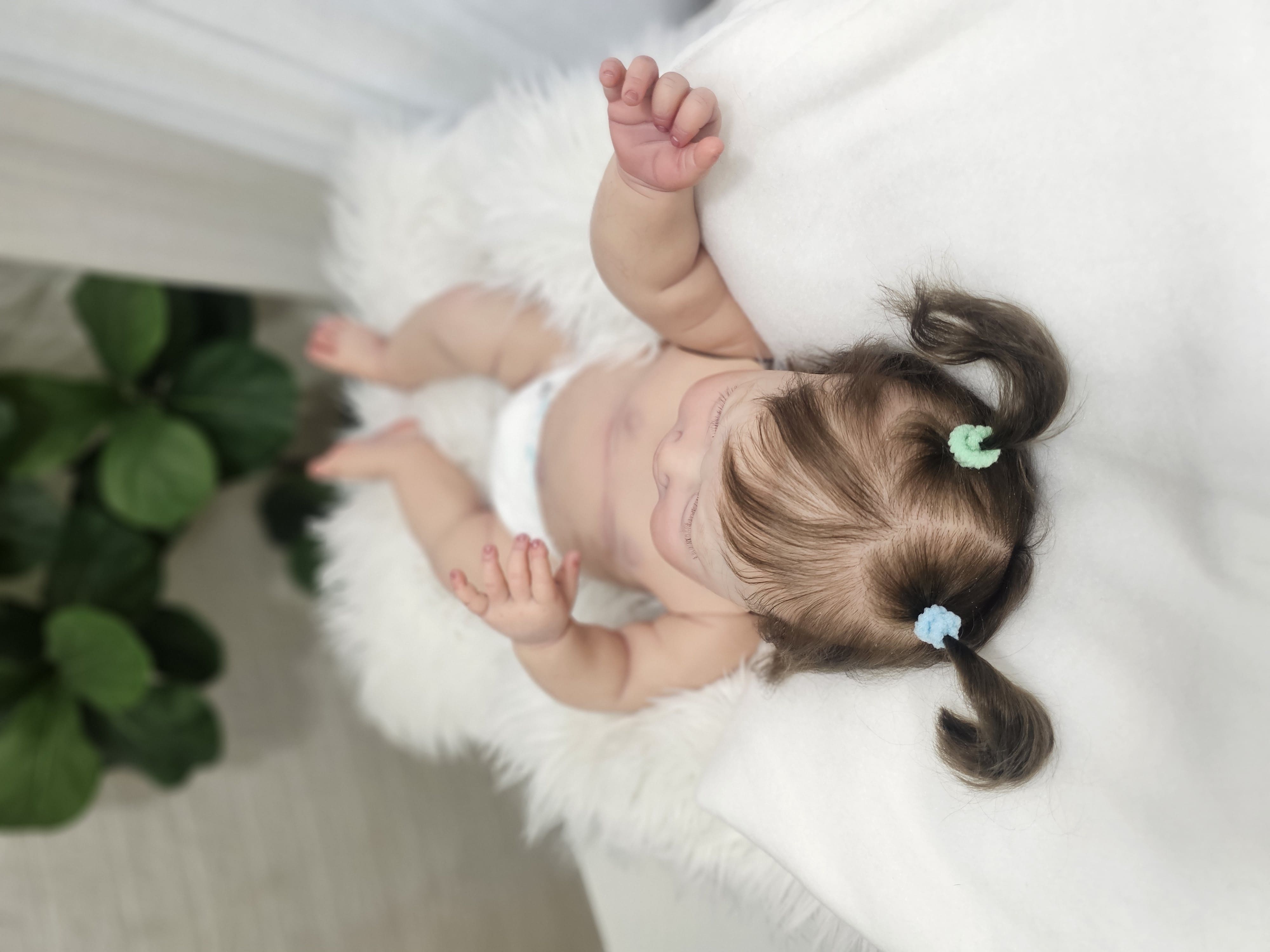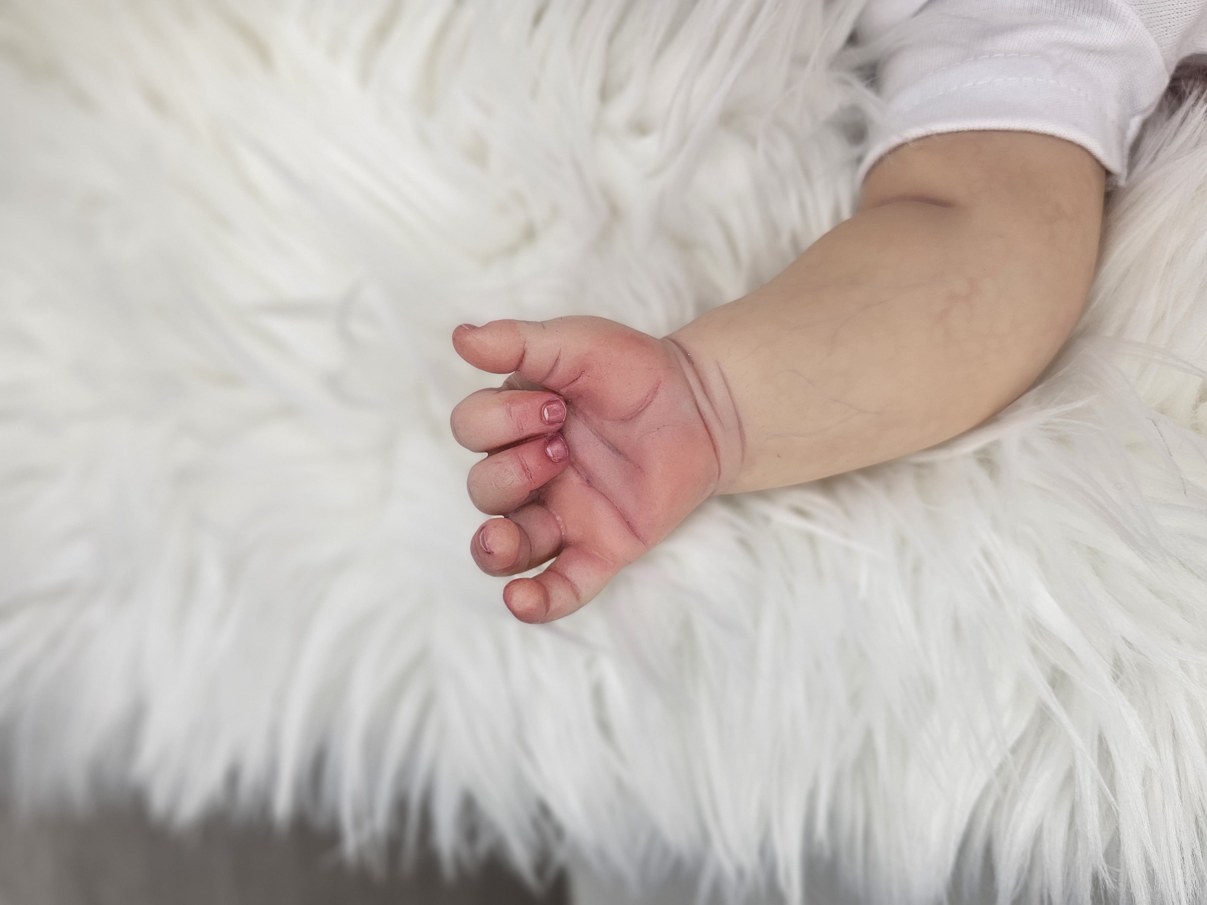 Confeccionado com técnicas avançadas de pintura, que dão suavidade e realismo ao bebé, diversos tons e entre tons de cores, rico em detalhes;
