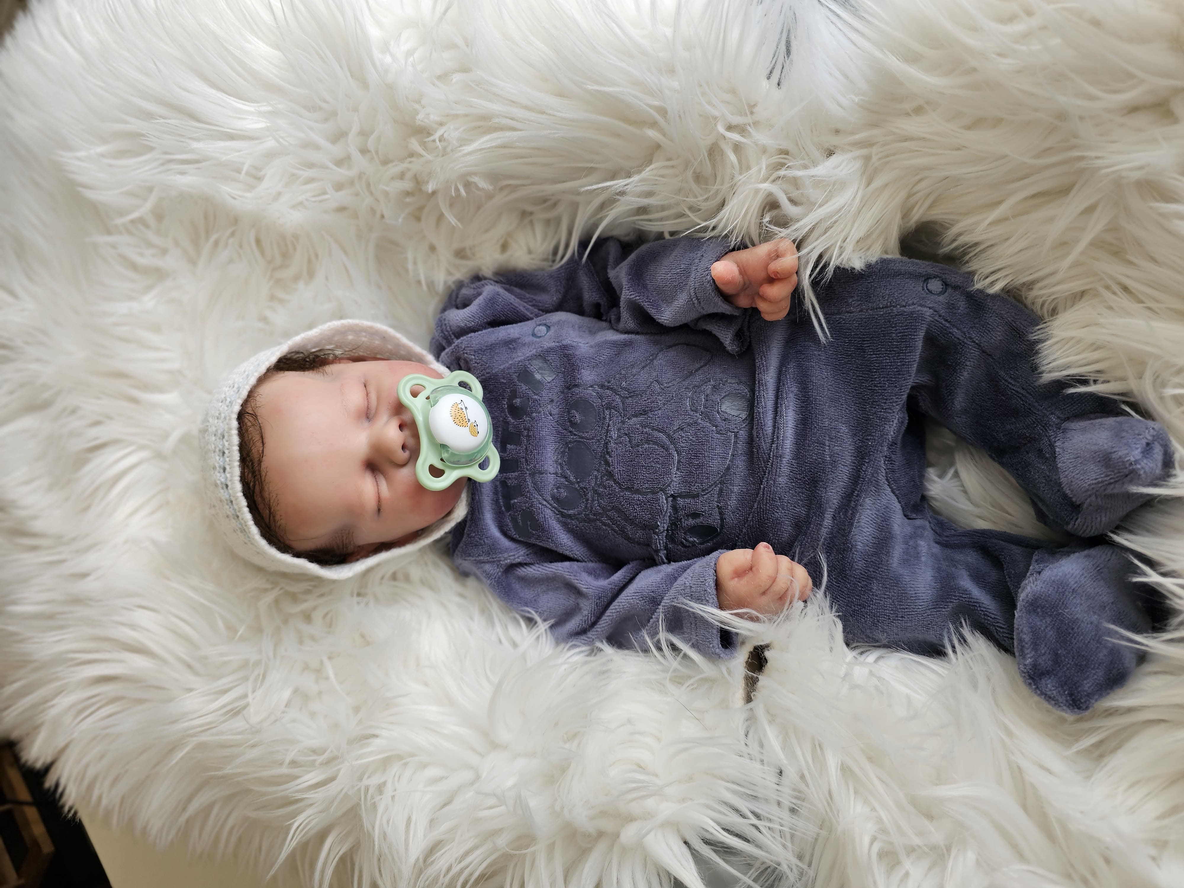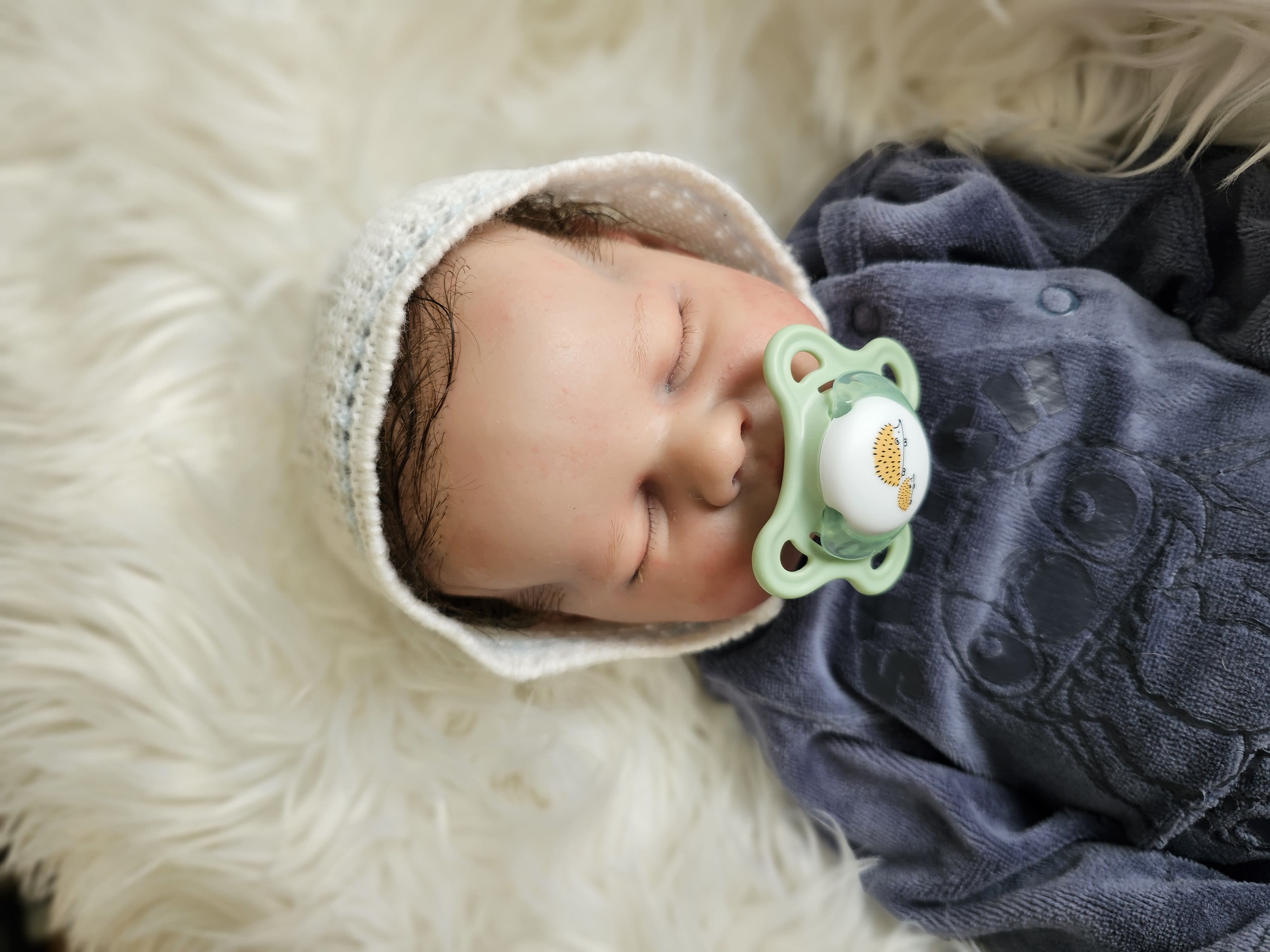 Confeccionado com técnicas avançadas de pintura, que dão suavidade e realismo ao bebé, diversos tons e entre tons de cores, rico em detalhes;