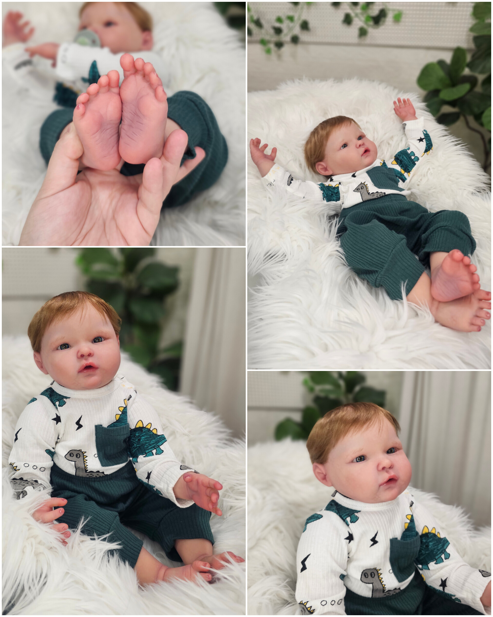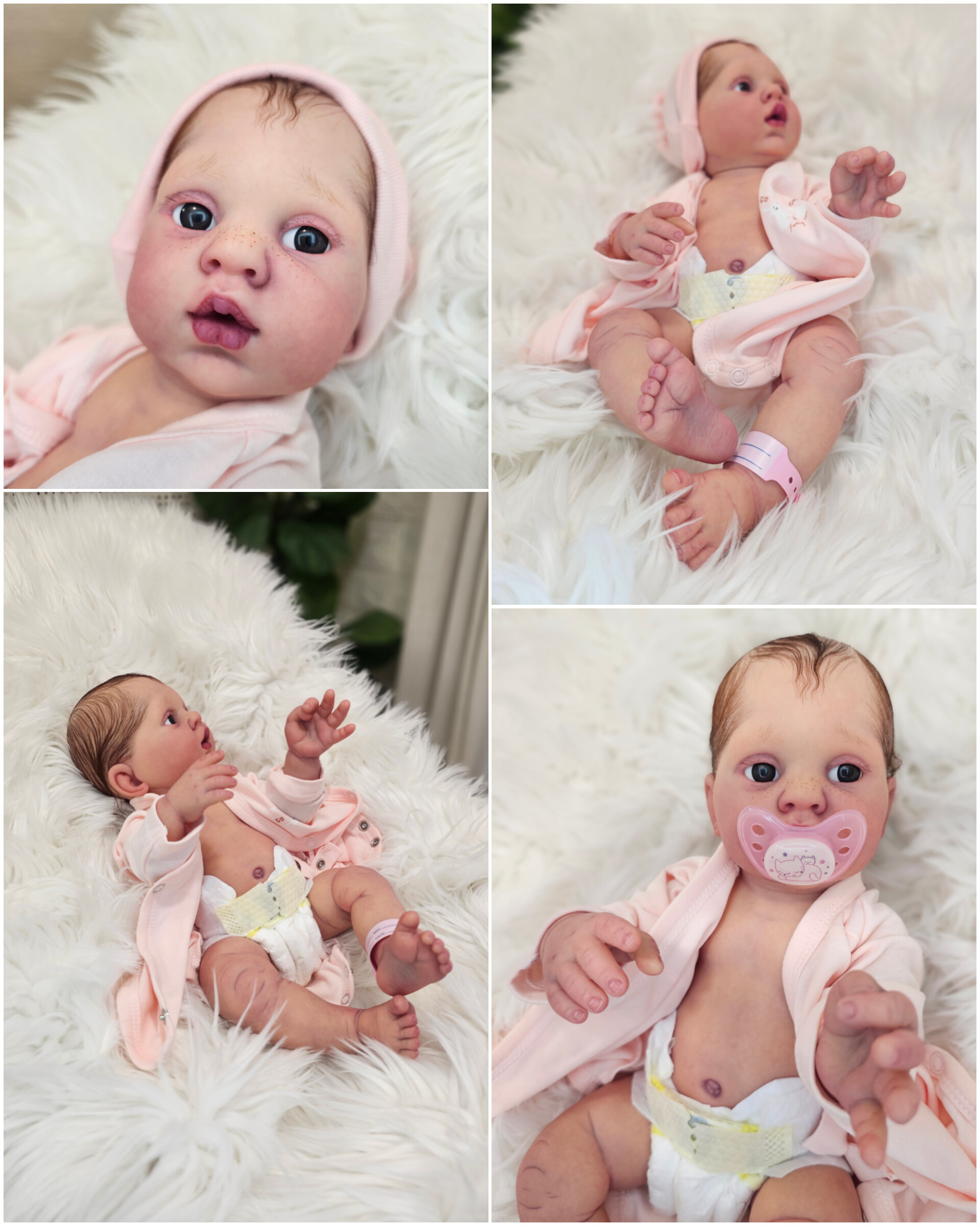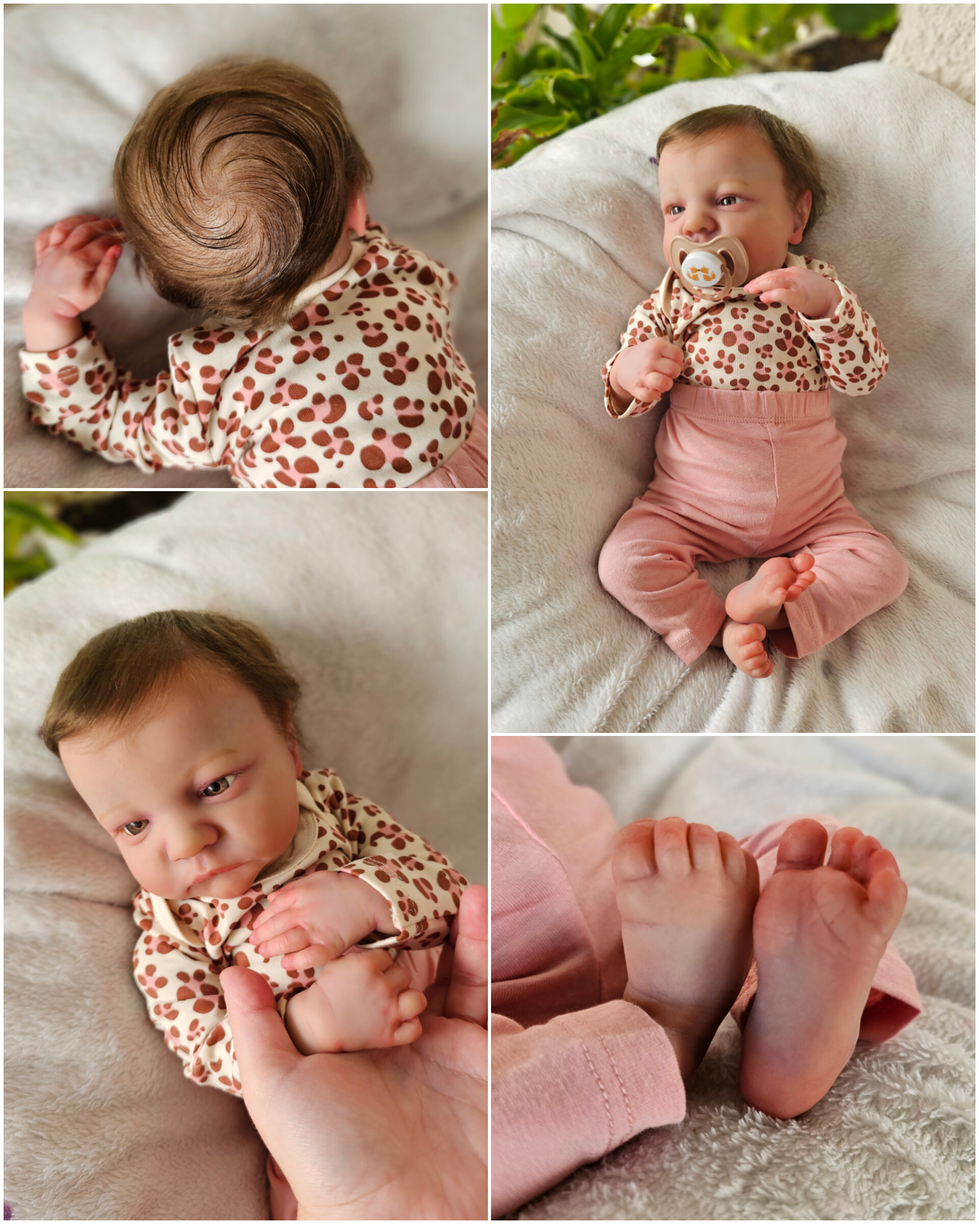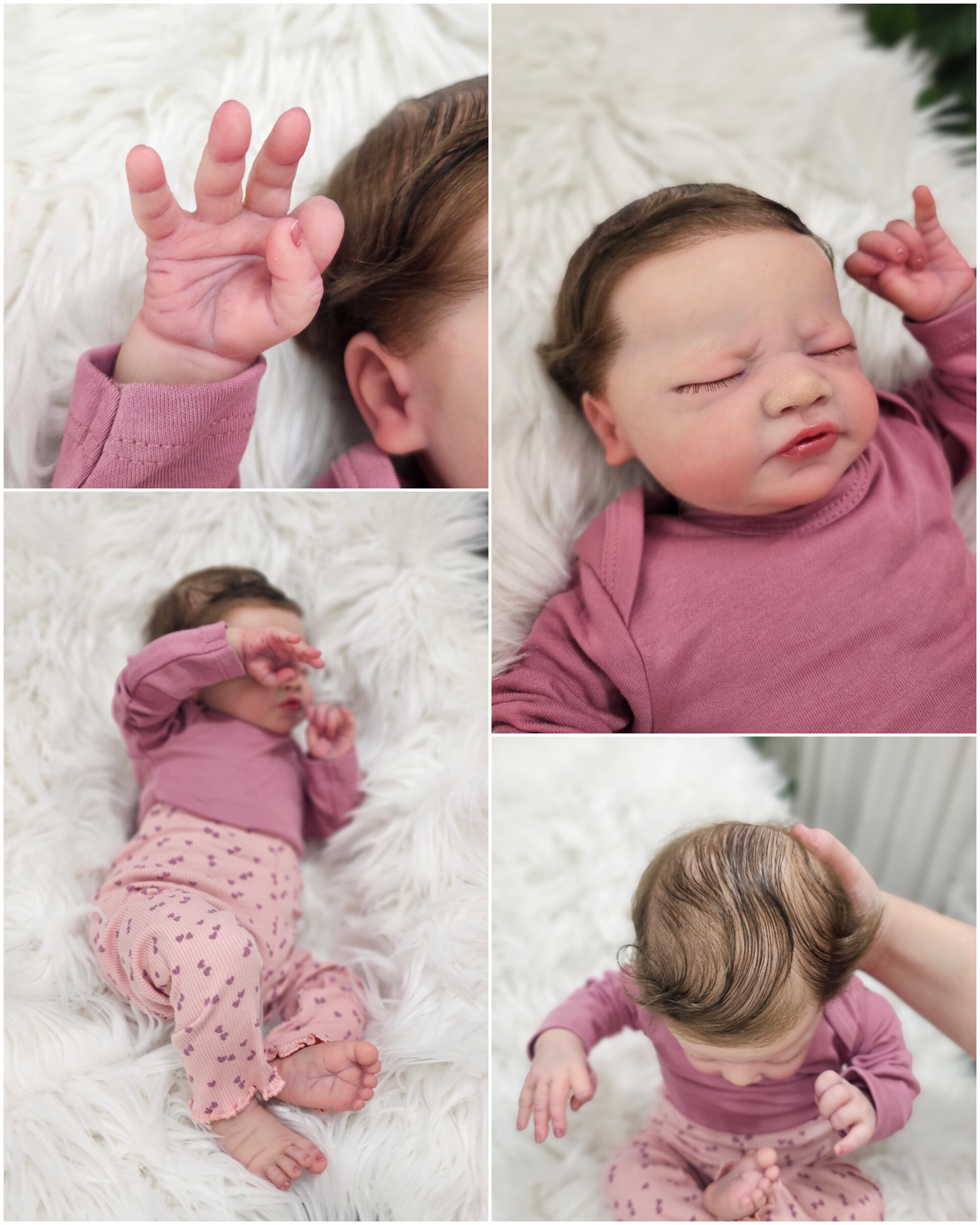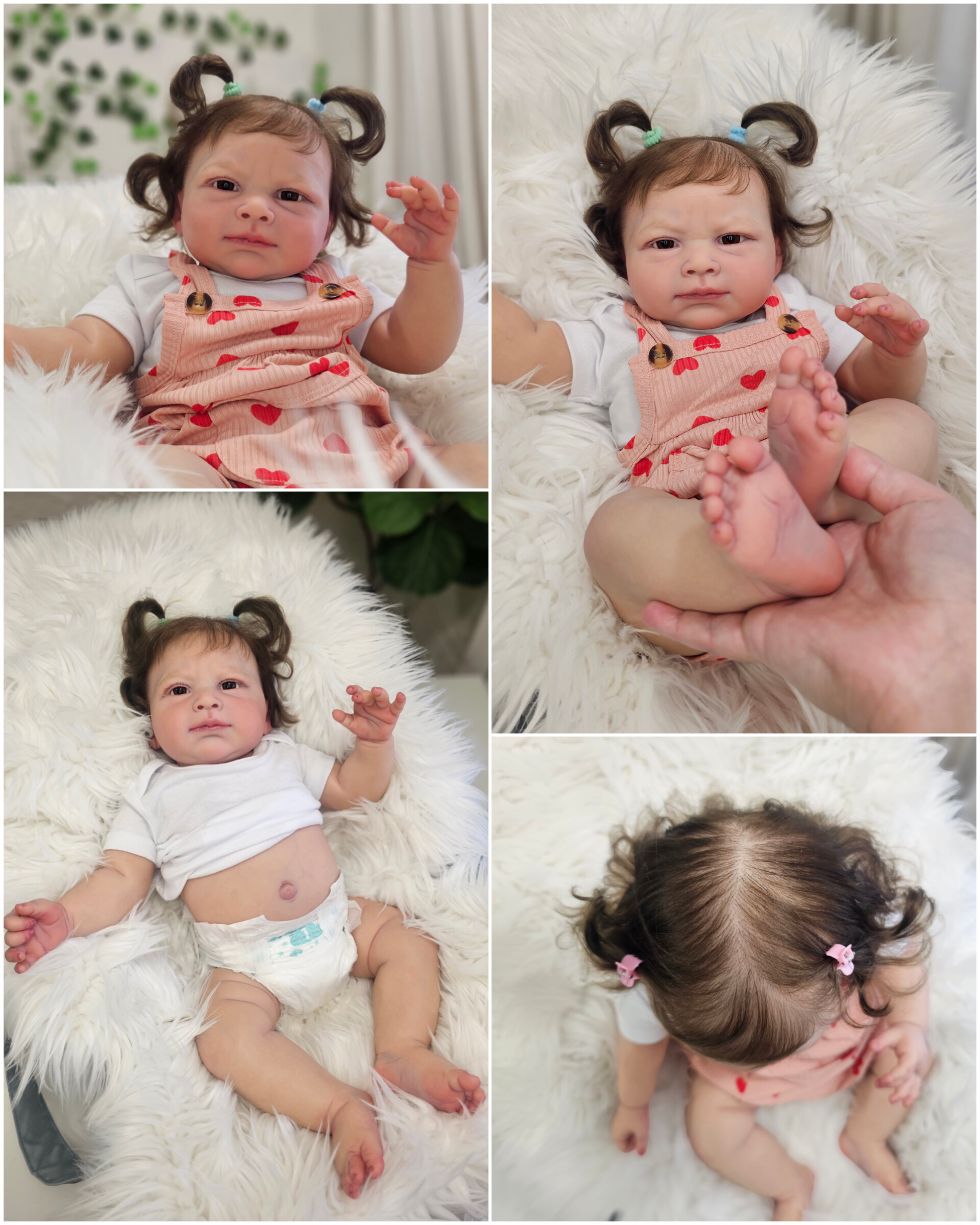 O cabelinho dos bebés é natural, e não sintético. Todos são enraizados com Mohair Premium de alta qualidade.