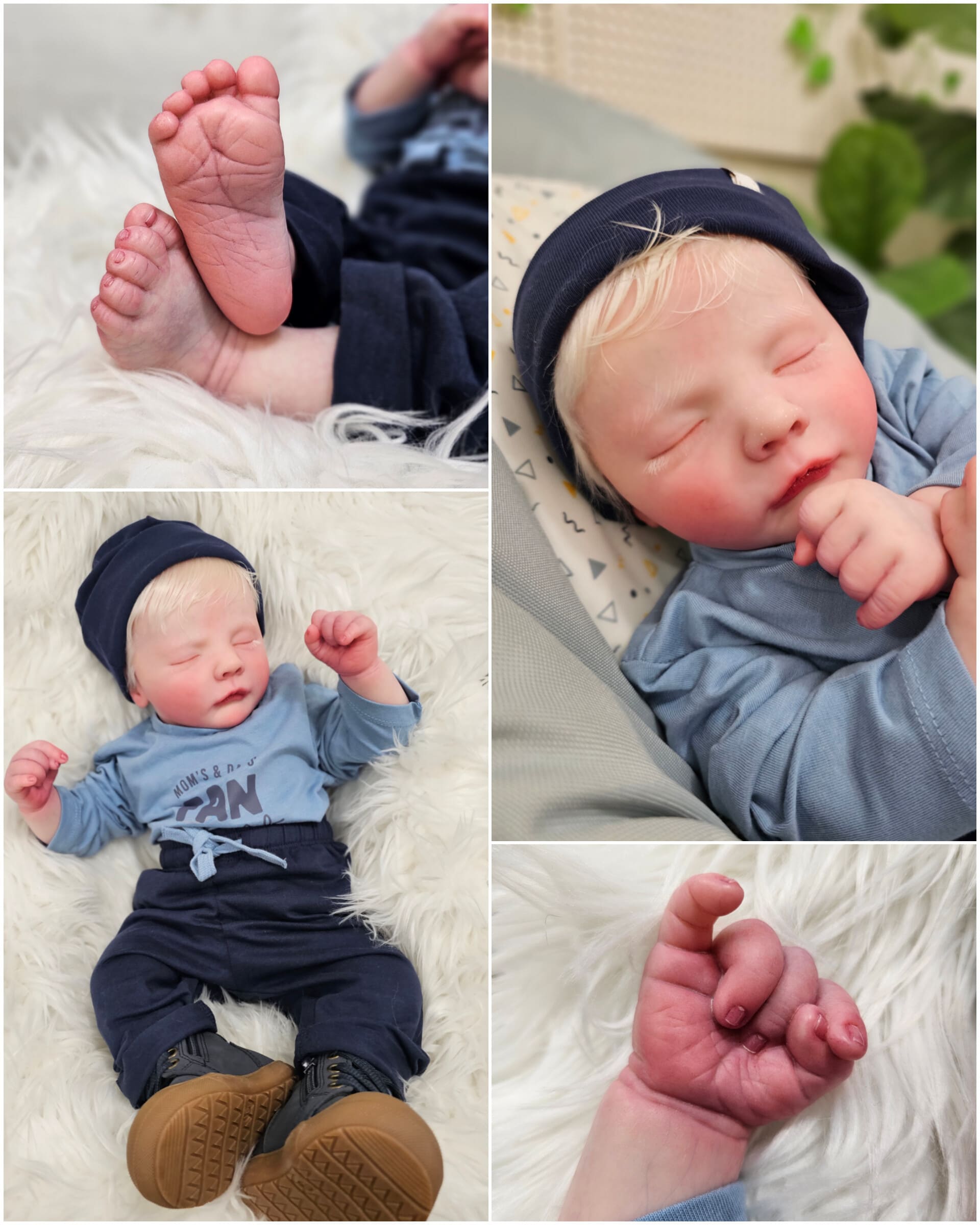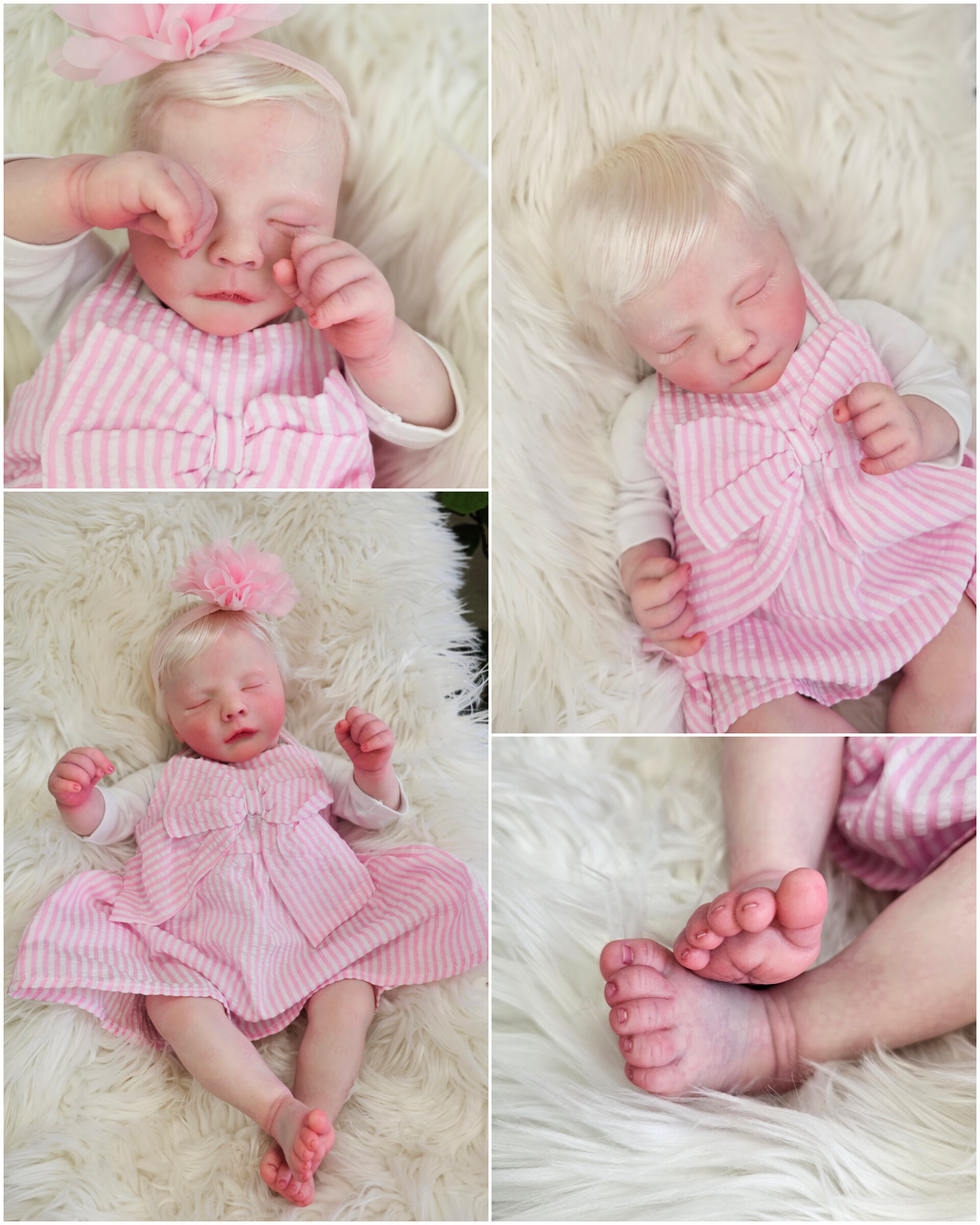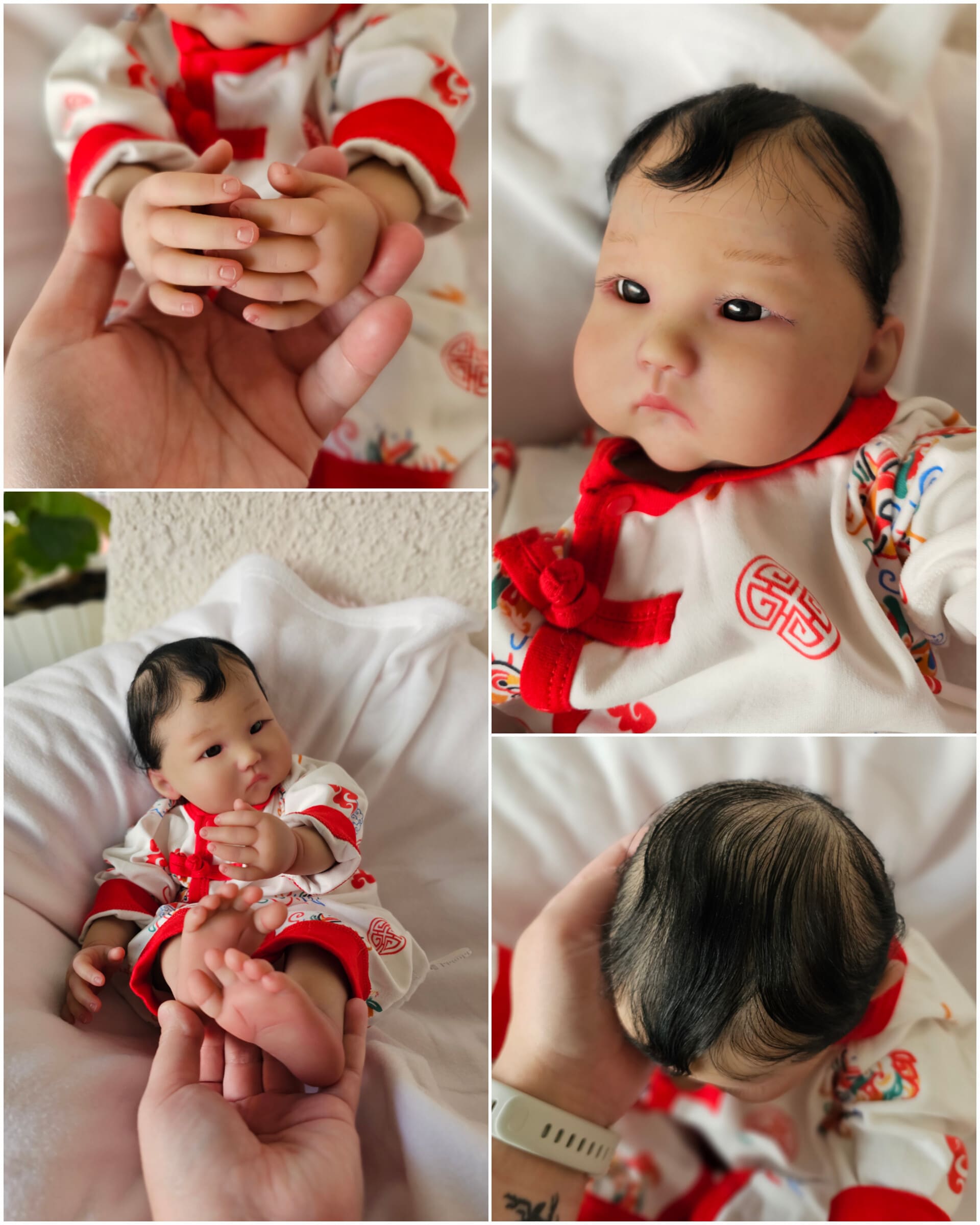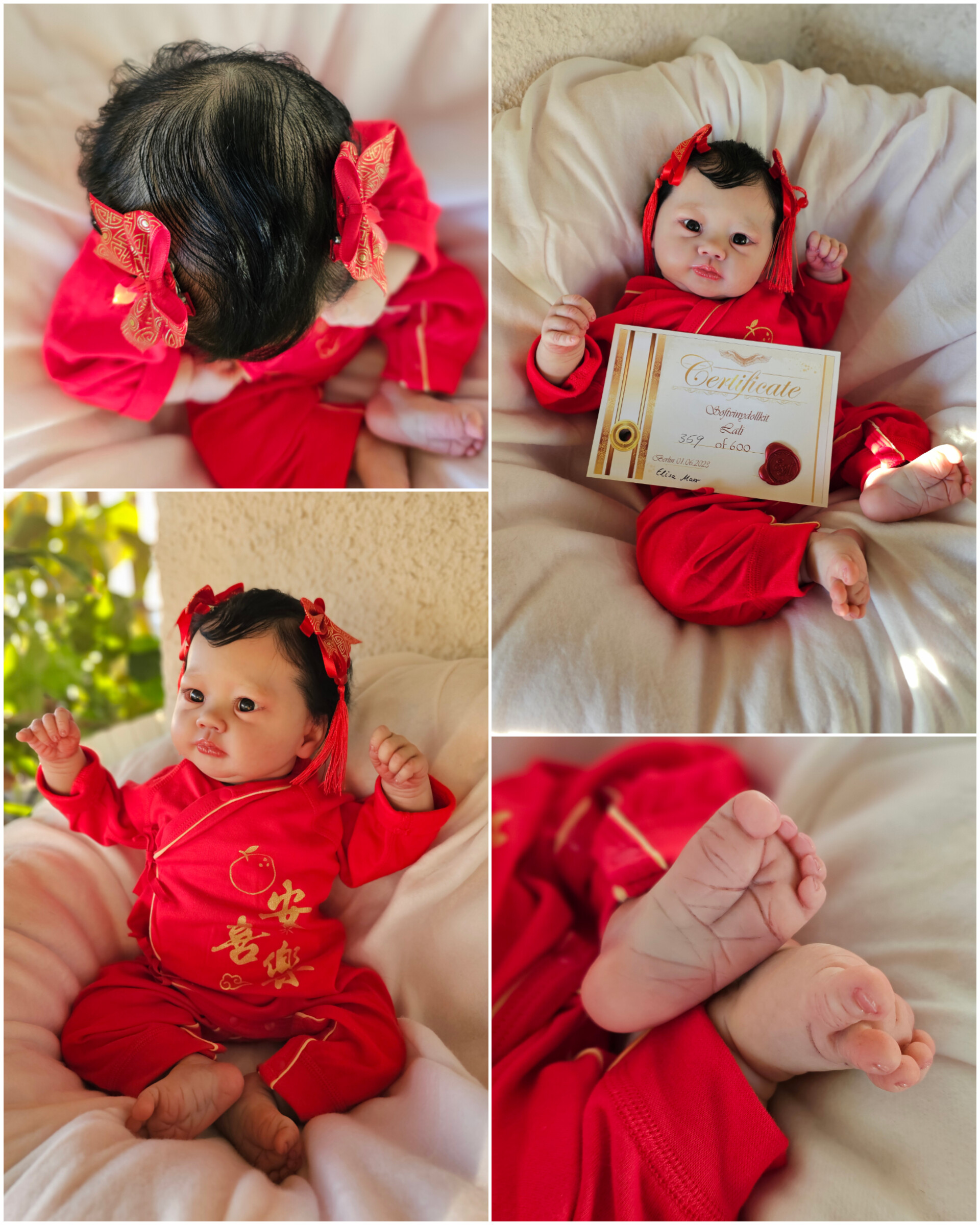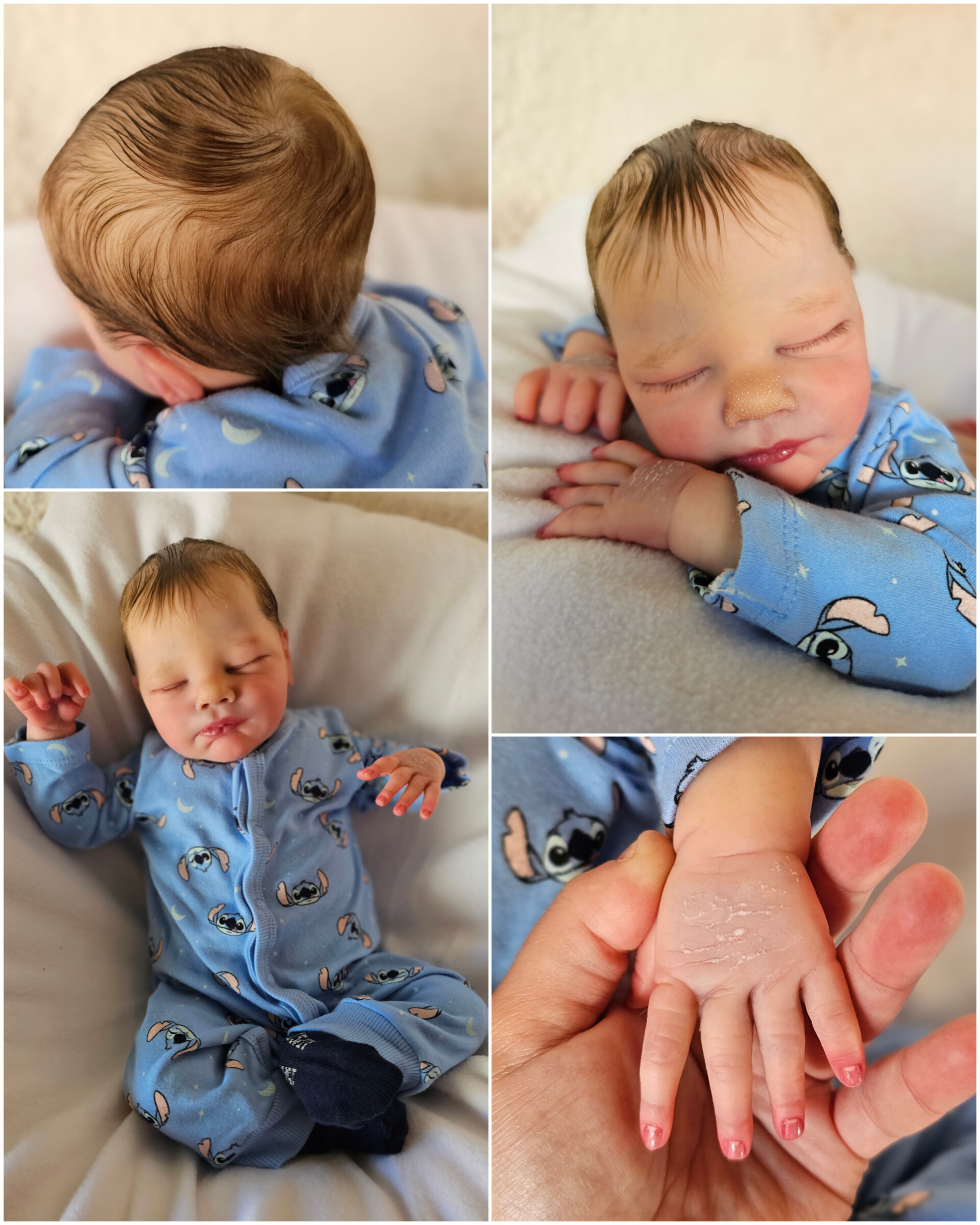 O cabelinho dos bebés é natural, e não sintético. Todos são enraizados com Mohair Premium de alta qualidade.